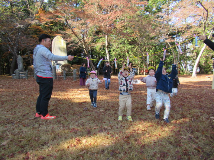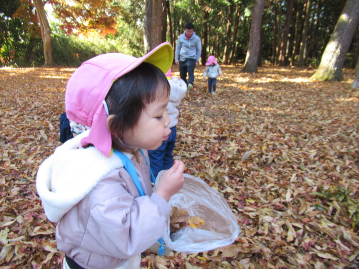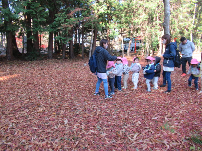 イチョウやもみじの落ち葉をサクサク踏みしめて楽しんでいました