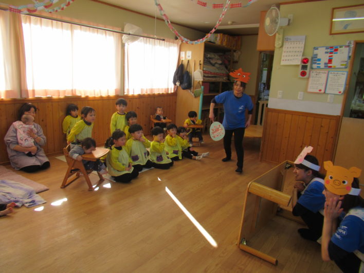 色々なゲームや先生の出し物「3匹の子ぶた」を楽しみました♪