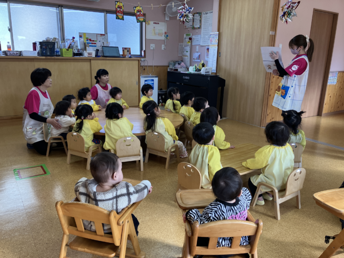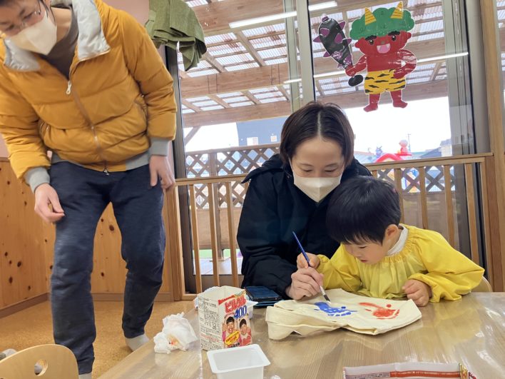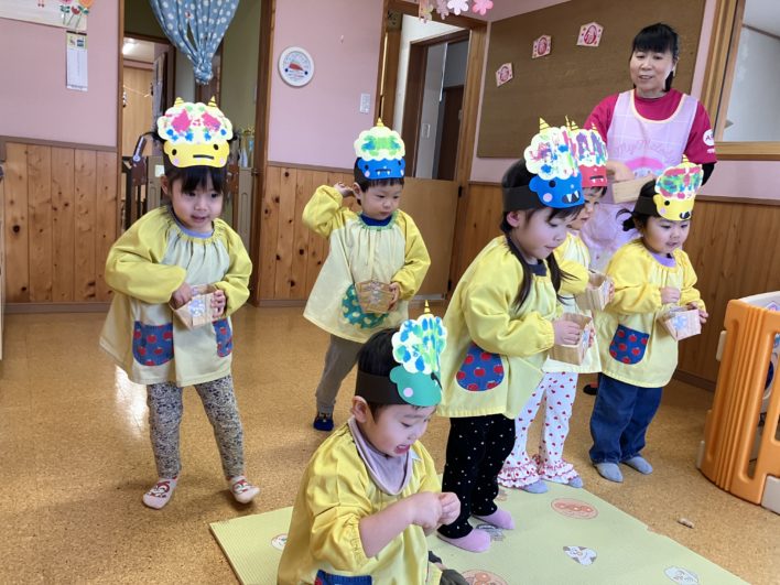 節分のお話しを先生から聞いて、子ども達が元気に過ごせますようにと