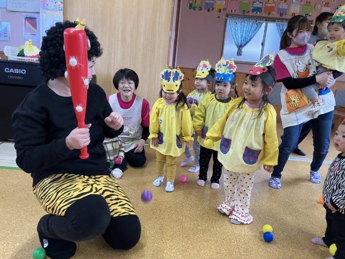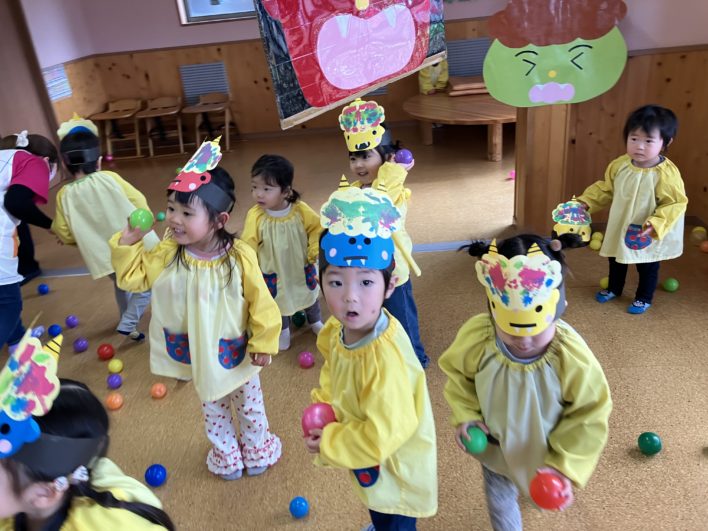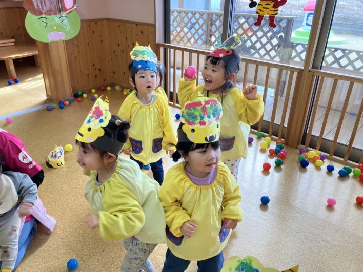 鬼の登場に少し驚きましたが、逃げていく鬼をみて「やった~!」と大喜びの子ども達
