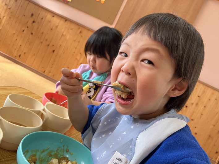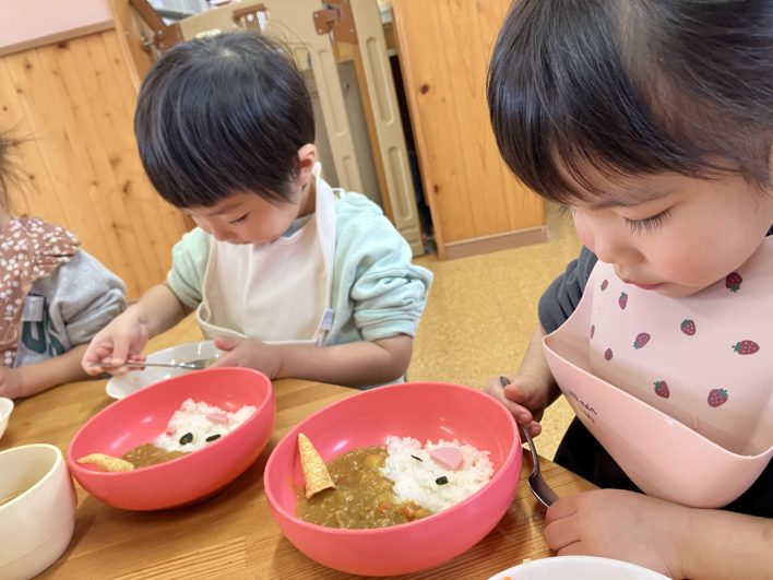 がんばった後はお給食の「鬼さんカレー」をおいしそうに頬張っていました(^^)